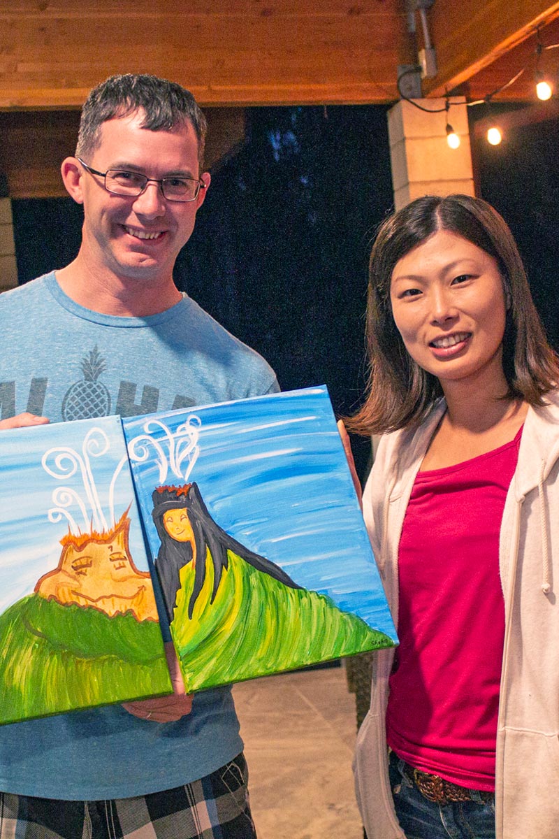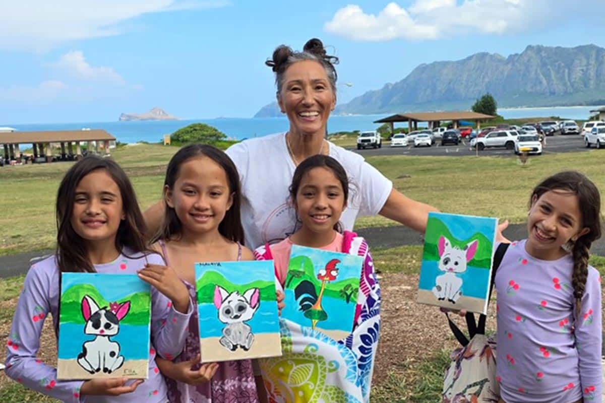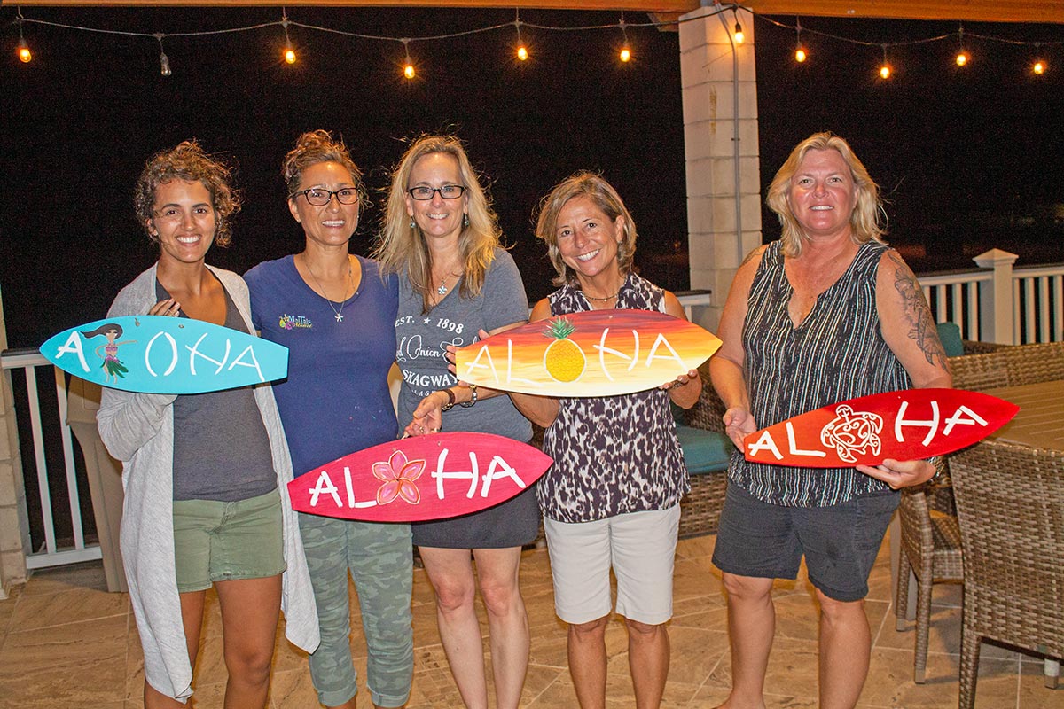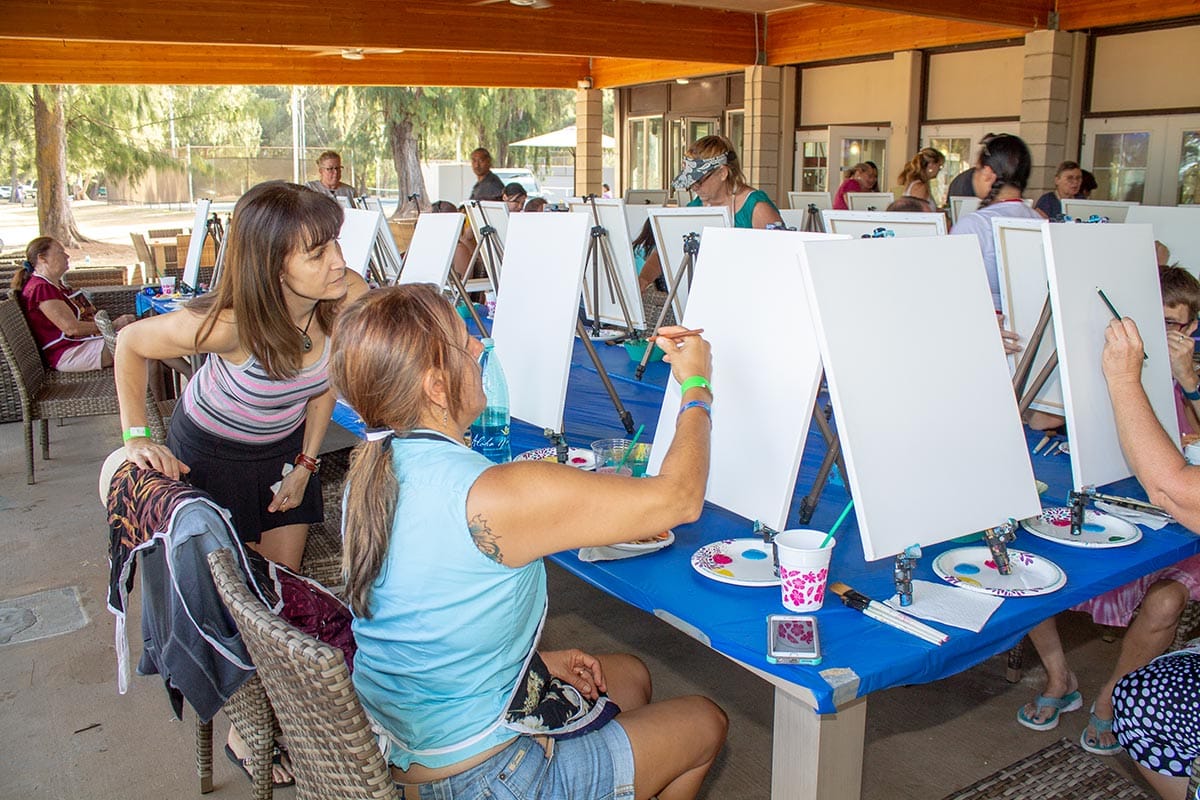 A painting party on the Turtle Cove Deck with a front-row view of Bellows Beach.